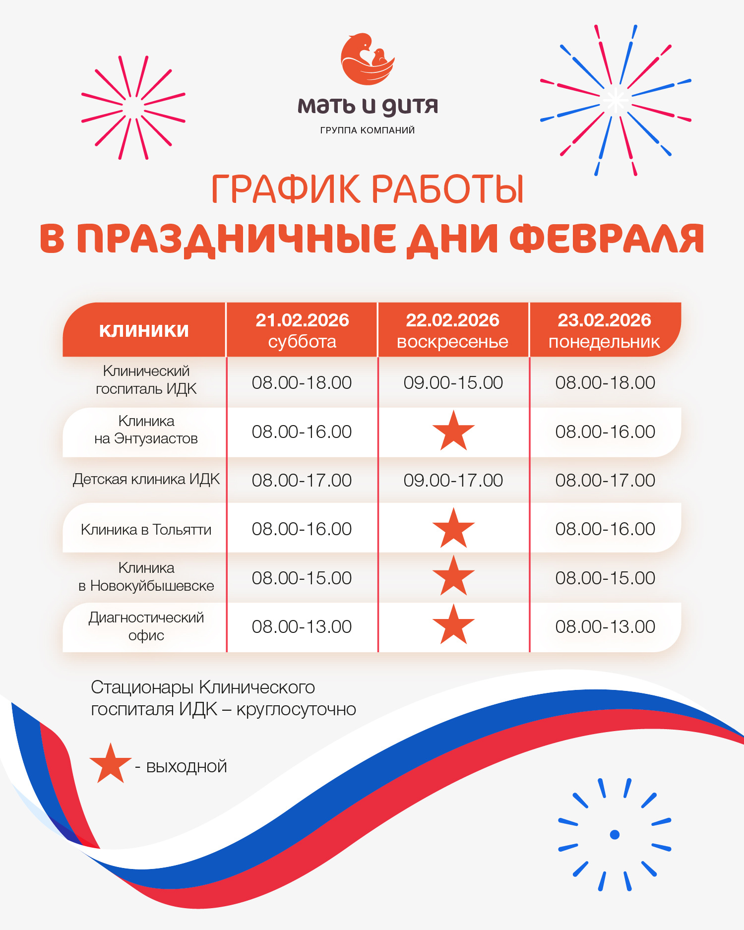 Информируем вас о графике работы клиник клиник «Мать и дитя-ИДК» в праздничные дни.